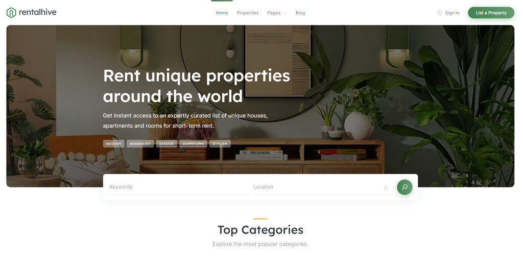 RentalHive is a complete solution for building rental marketplaces such as Airbnb with WordPress. It has a clean and modern design, a versatile booking system, and the essential marketplace features required for building and launching a rental booking platform.