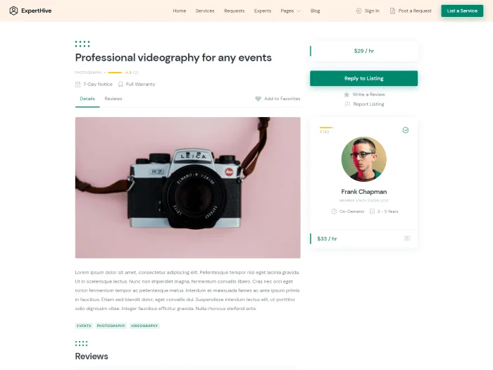 Create a fully-featured service marketplace without any coding skills usіng ExpertHive, a clean and modern WordPress theme for service platforms.